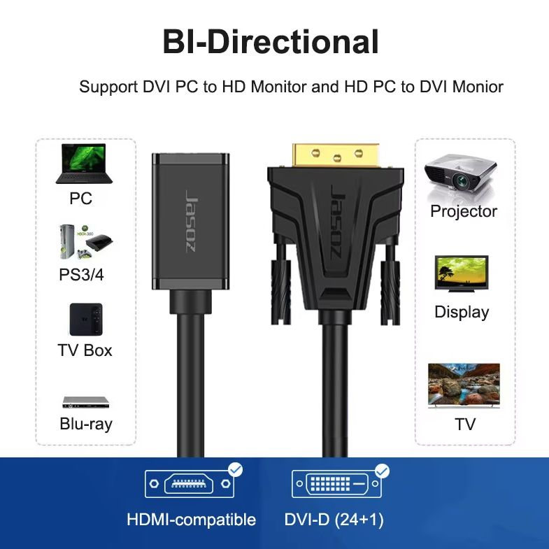 Jasoz HDMI -compatible female to DVI-D male 24+1 cable x 1